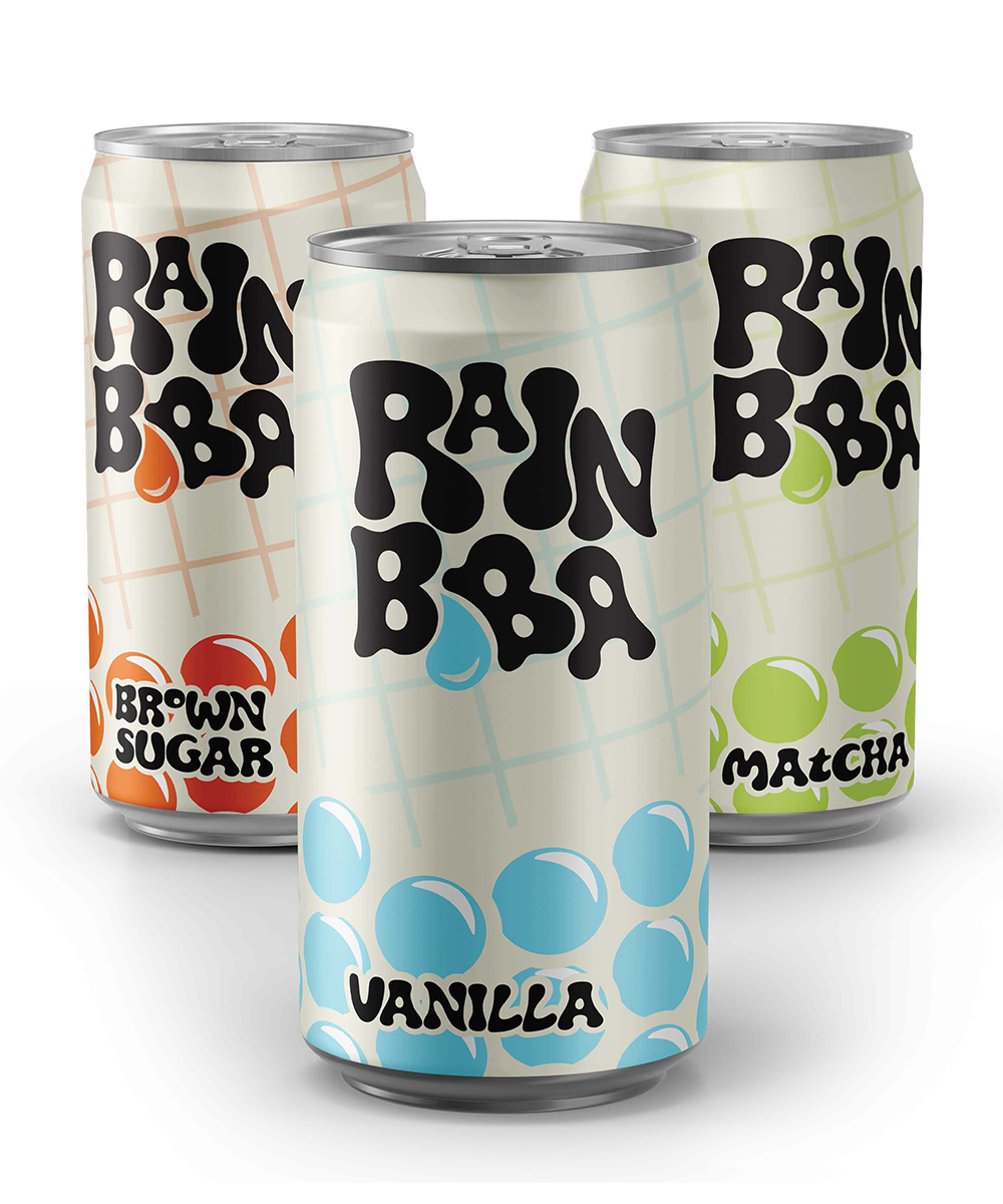A comprehensive brand identity and packaging design were developed for a new line of canned boba drinks.