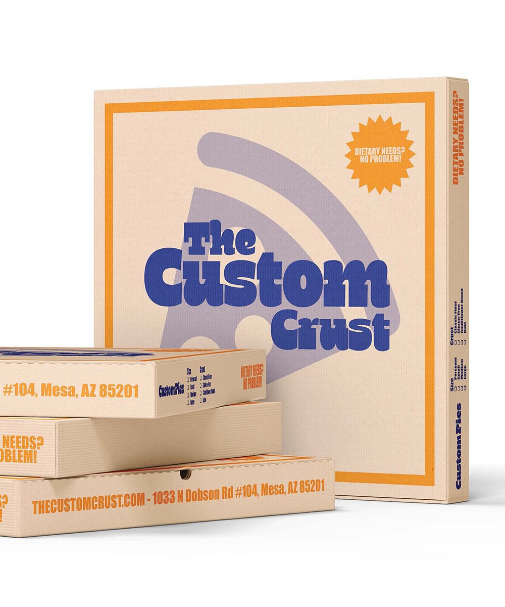 Creative branding and distinct packaging design were established for a custom pizza box product.