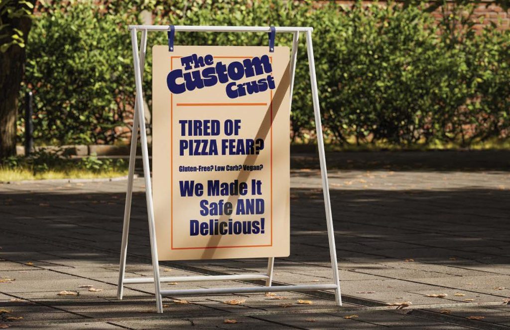 The challenge for this faux brand was showing people that this wasn’t a standard pizza joint, but a place designed specifically for those with dietary needs. The solution was a complete brand package built around this core idea.