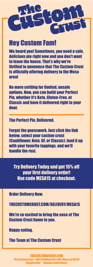 Custom Crust Now Delivers!